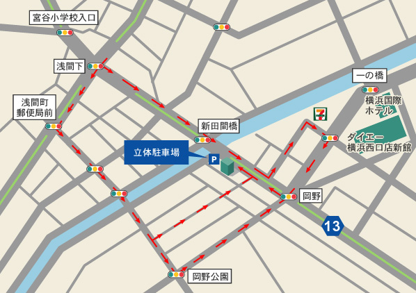 ※浅間下方面より車で駐車場をご使用する場合は、下記の地図の様に迂回が必要となります。
